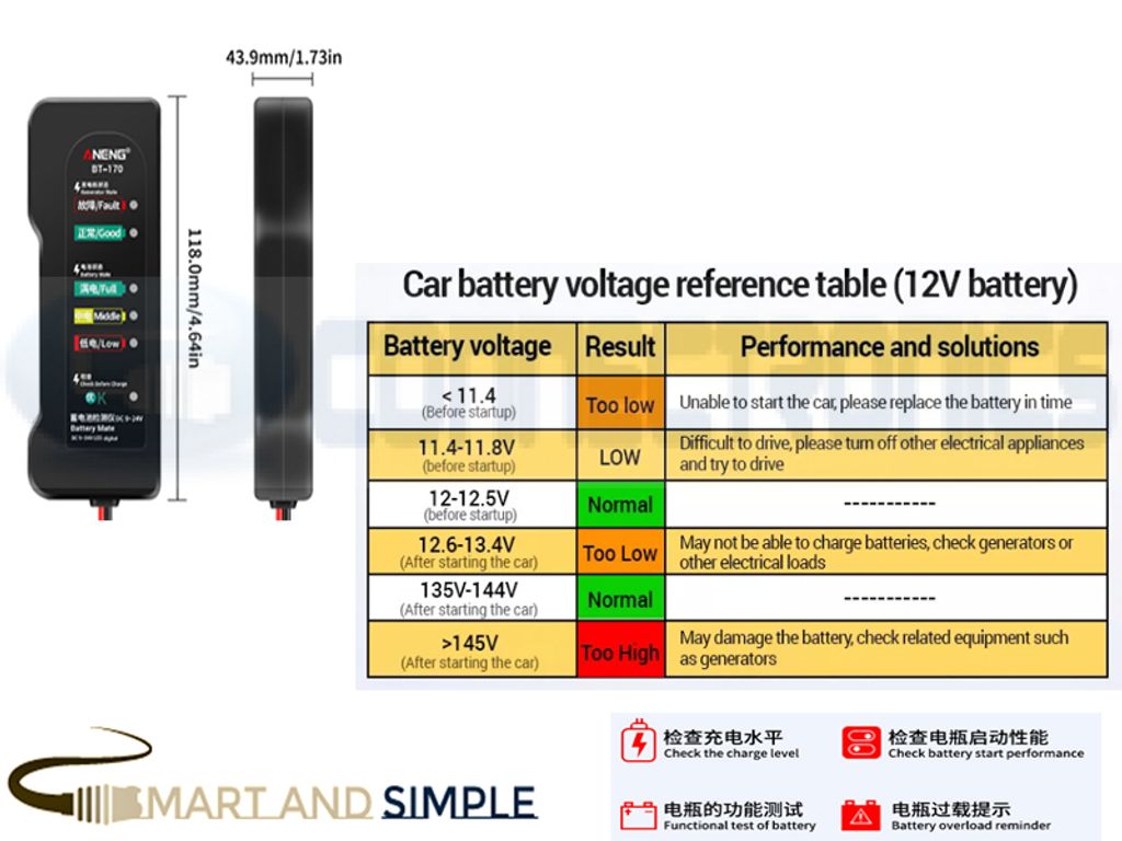 Car motorcycle tester fault detector Battery tester 12v Auto Diagnostic Tool SS-BT17