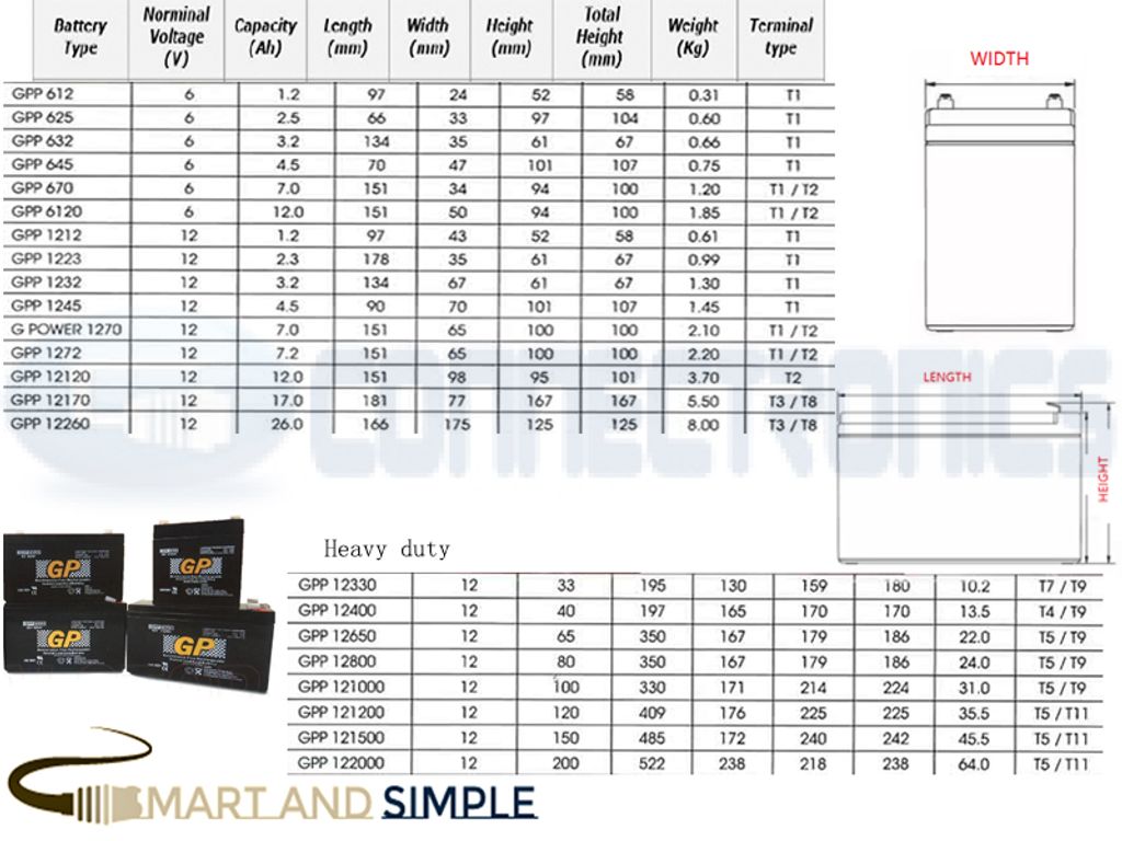 GPOWER 6V 12V BACKUP BATTERY RECHARGEABLE SEALED LEAD ACID BATTERY