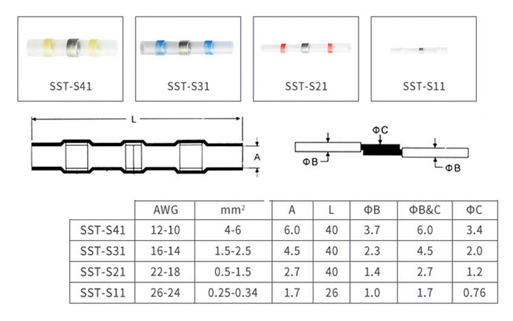 Waterproof self-solder heat shrink insulated electrical butt wire terminalsWaterproof self-solder heat shrink insulated electrical butt wire terminals 2