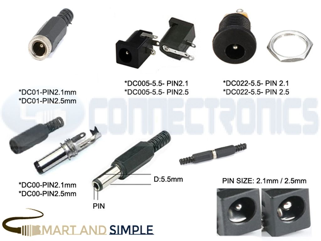 PANEL MOUNT DC POWER JACK INLINE DC CONNECTORS 2.1mm 2.5mm