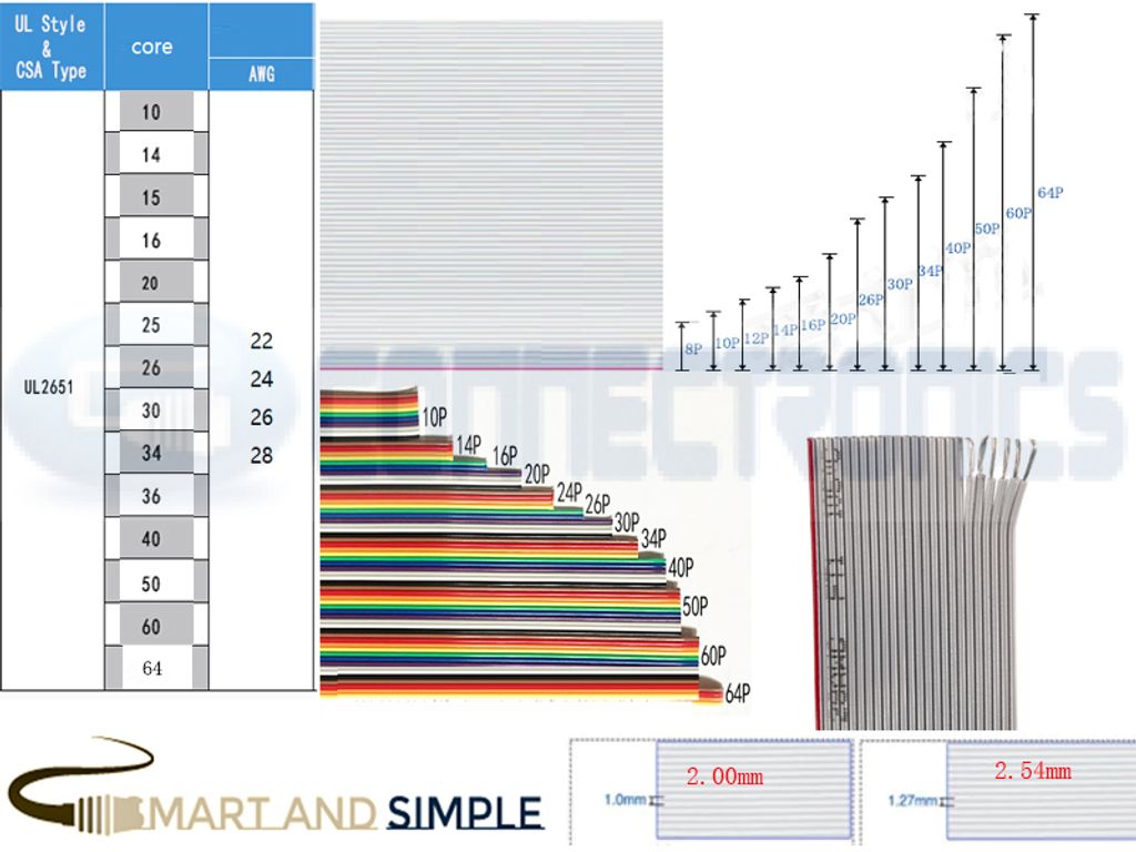 Flat ribbon cable for IDC 2.54mm/2.00mm 22 24 26 28awg (per meter)
