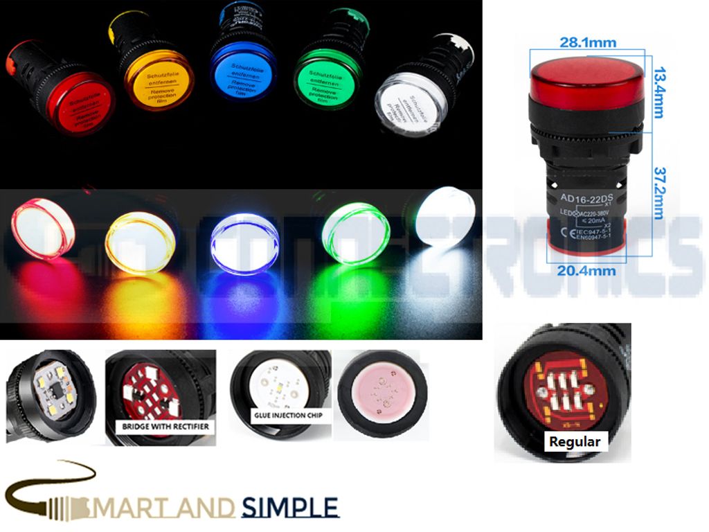 22mm LED Indicator lamp Pilot lamp 12V24V220V380V regular
