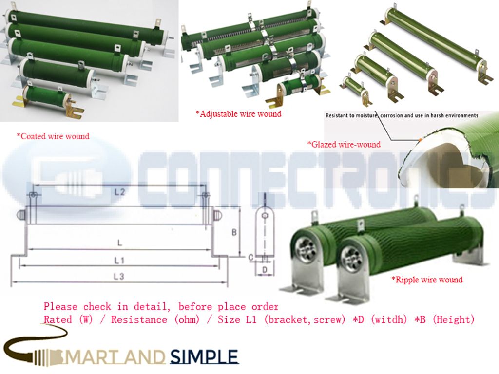 High power - Coated wire wound Ripple wire wound Adjustable wire wound Glazed wire wound Vitreous enamelled resistors