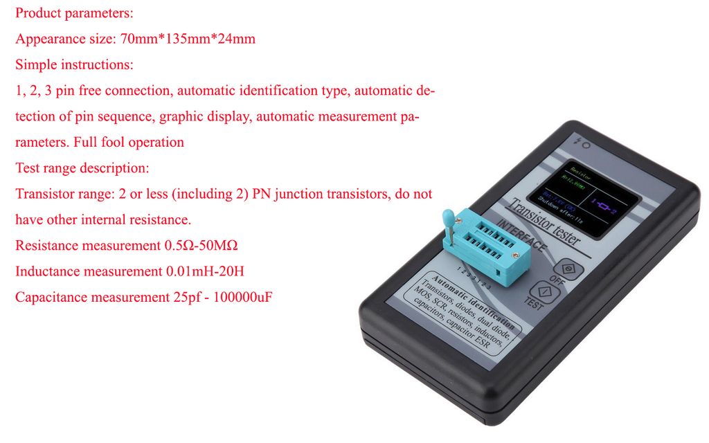 Color screen, graphic display, M328 transistor tester, resistance meter, inductance meter, capacitance meter, ESR instrument