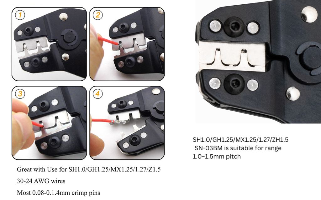 Crimping Tool pitch 1.0- 1.5mm range 30-24awg Sn-03BM